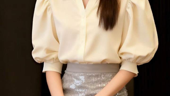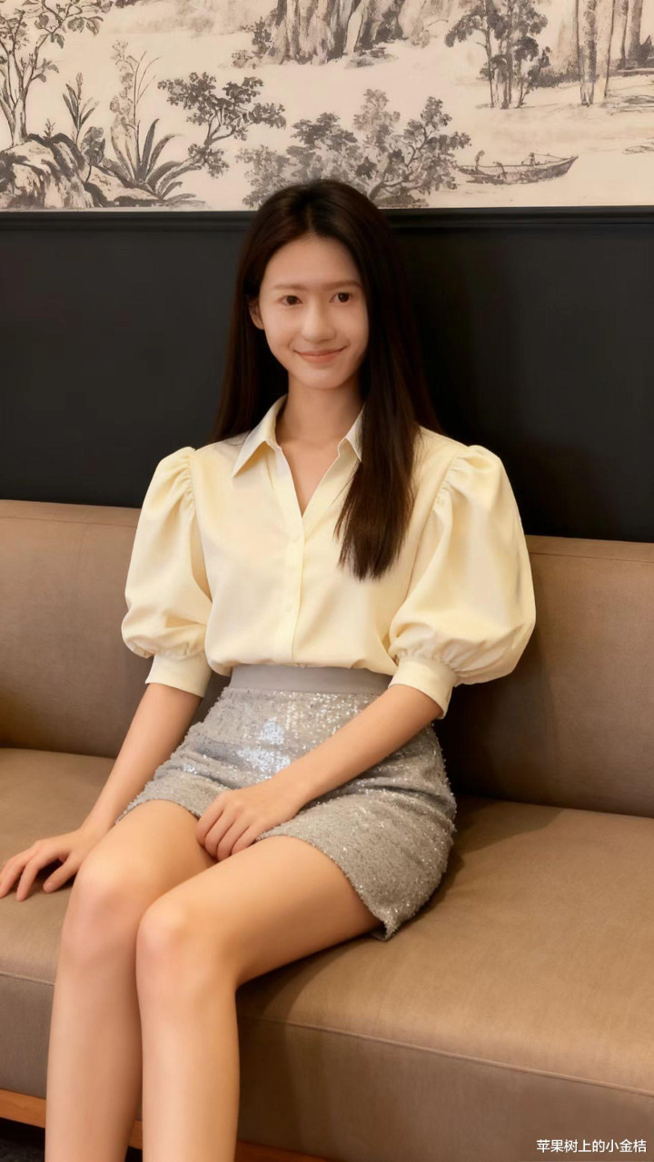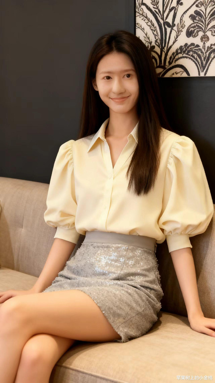 米黄色衬衫,透亮包裹裙