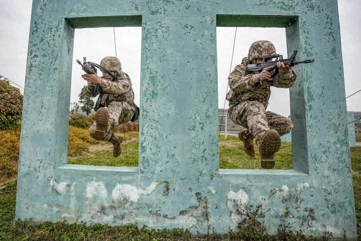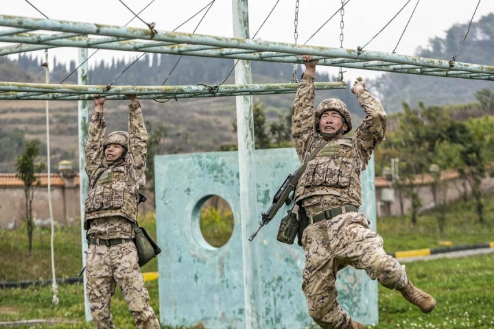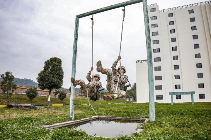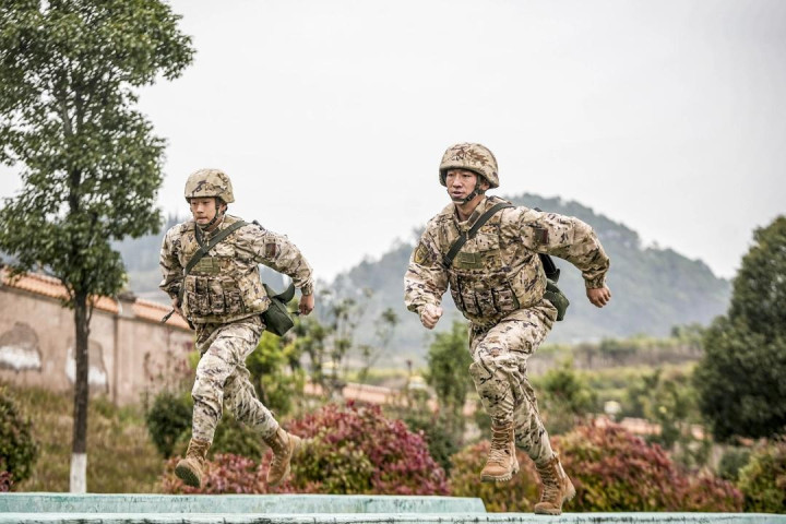武警官兵快速攀爬轮胎墙磨真金不怕火