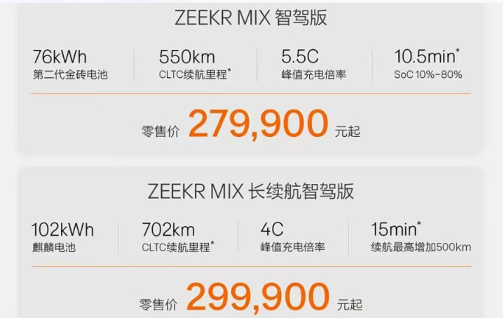 二是极氪MIX动作一款纯电MPV,自身就有些损失。