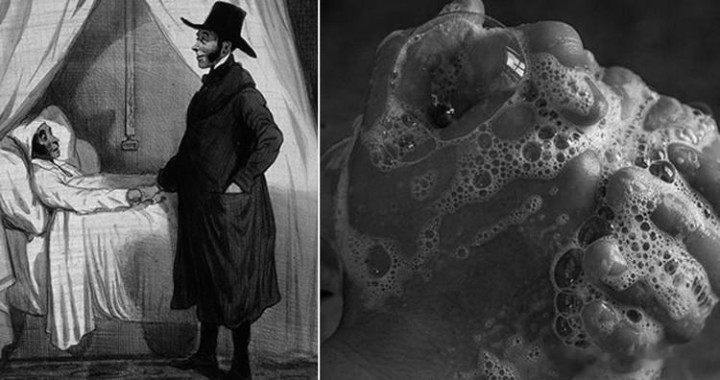 3.在19世纪60年代之前,医师给病东谈主看诊前并不洗手;而那位建议“医师在战争病东谈主前应该洗手”的医师,却被同业哄笑到精神崩溃。